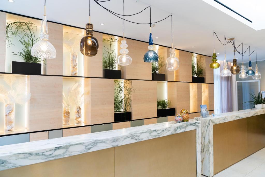 Dotées de la climatisation, les chambres de l'hôtel Jesolopalace sont décorées dans des tons différents et affichent un style moderne. Chacune comprend une télévision à écran plat, un petit réfrigérateur et une salle de bains entièrement équipée avec une cabine de douche en verre.