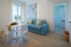 Offering partial views of the sea, this spacious suite has a private terrace. It includes a bedroom, a bathroom, and a separate living room with sofa bed and kitchenette.