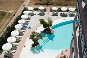 Au déjeuner, des plats légers et des sandwiches sont disponibles au snack-bar près de la piscine. Sur la plage, vous pourrez profiter gratuitement d'un parasol et de deux transats. Entourant l'ensemble de l'établissement, la piscine est équipée de chaises longues.