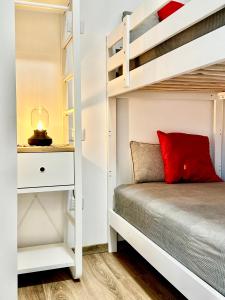 Cet appartement avec climatisation se compose de 2 chambres, d'un salon, d'une cuisine entièrement équipée avec un réfrigérateur et une machine à café, ainsi que de 2 salles de bains avec un bidet et une douche.