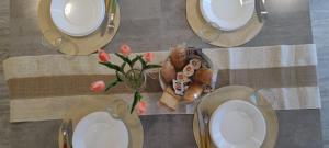 Boasting a private entrance, this air-conditioned holiday home includes 1 living room, 2 separate bedrooms and 1 bathroom with a bath or a shower and a bidet. In the kitchen, guests will find a stovetop, a refrigerator, kitchenware and an oven. The holiday home offers a flat-screen TV, a washing machine, a coffee machine, a seating area as well as garden views. The unit has 4 beds.