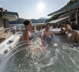 Guests will have a special experience as the family room features a sauna. The spacious family room provides air conditioning, soundproof walls, a terrace with lake views as well as a private bathroom featuring a walk-in shower. The unit offers 3 beds.