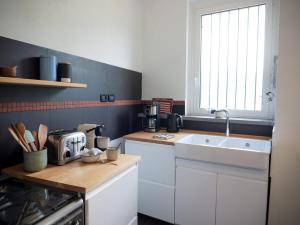 Featuring a private entrance, this holiday home comprises 1 living room, 2 separate bedrooms and 1 bathroom with a shower and a bidet. Meals can be prepared in the well-fitted kitchen, which comes with a stovetop, a refrigerator, a dishwasher and kitchenware. Boasting a terrace with lake views, this holiday home also provides a washing machine and a flat-screen TV. The unit offers 4 beds.