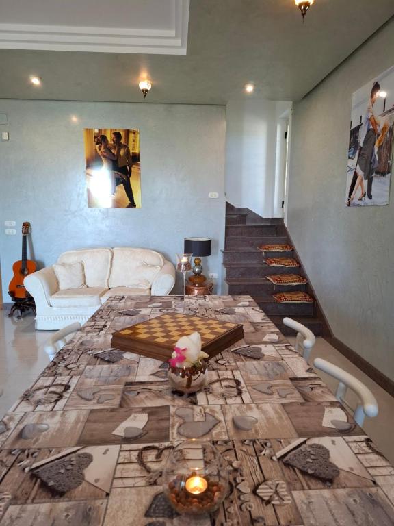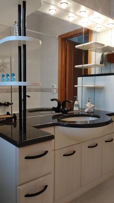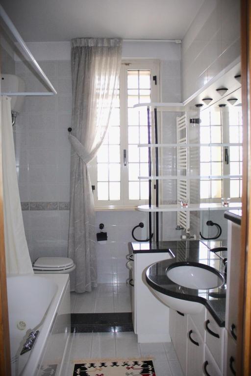 Cette chambre d'hôtes avec climatisation se compose de 3 chambres, d'un salon, d'une cuisine entièrement équipée avec un réfrigérateur et une machine à café, ainsi que de 2 salles de bains avec un bidet et une douche.