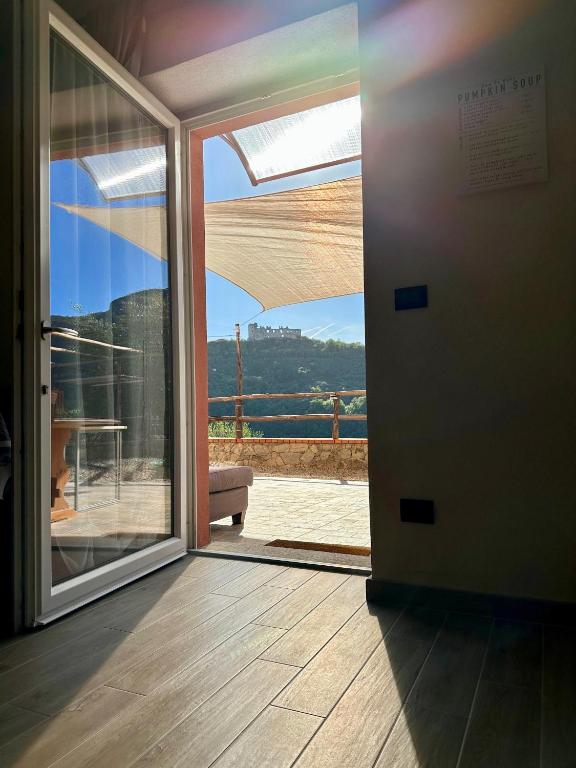 Ampia camera matrimoniale climatizzata dotata di ingresso indipendente, terrazza con vista sul giardino e bagno privato con doccia. La sistemazione dispone di 2 letti.