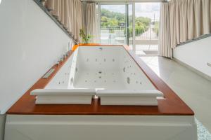 This suite offers a hot tub. Featuring a private entrance, this air-conditioned suite comprises 1 living room, 1 separate bedroom and 1 bathroom with a bath and a shower. Meals can be prepared in the well-fitted kitchen, which comes with a stovetop, a refrigerator, a dishwasher and kitchenware. The spacious suite provides a flat-screen TV with cable channels, a minibar, a coffee machine, a seating area as well as sea views. The unit offers 1 bed.