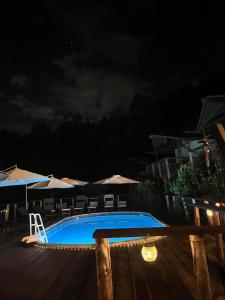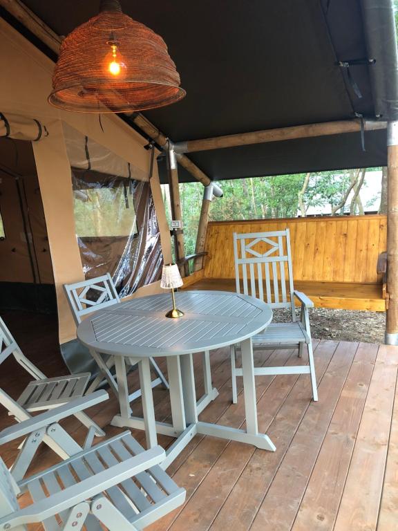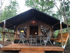 Guests will have a special experience as the tent features a pool with a view. The tent provides a washing machine, a private entrance, a terrace with garden views as well as a shared bathroom featuring a walk-in shower. The unit offers 3 beds.