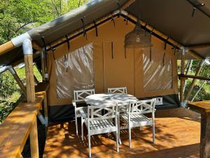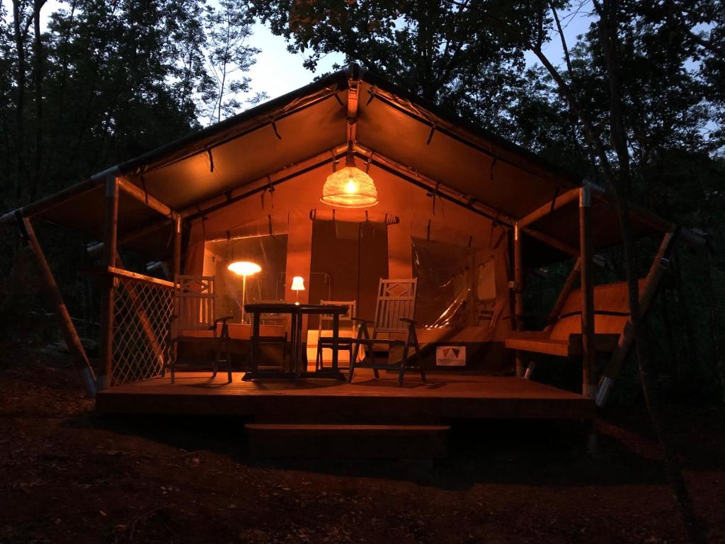 This tent's special feature is the pool with a view. The tent provides air conditioning, a washing machine, a terrace with garden views as well as a shared bathroom featuring a walk-in shower. The unit offers 1 bed.