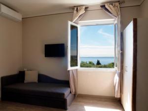 Questa camera matrimoniale è dotata di aria condizionata, armadio e bagno privato con doccia e bidet. Camera matrimoniale con TV a schermo piatto, bollitore elettrico, divano, pavimento piastrellato e vista sul cortile interno. L’alloggio dispone di 3 letti.