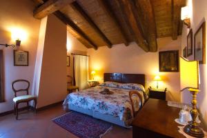Camera rustica climatizzata situata al 1° piano, dotata di soffitti con travi in rovere a vista e bagno privato con vasca o doccia. Potrete usufruire inoltre di una TV a schermo piatto e del WiFi gratuito.