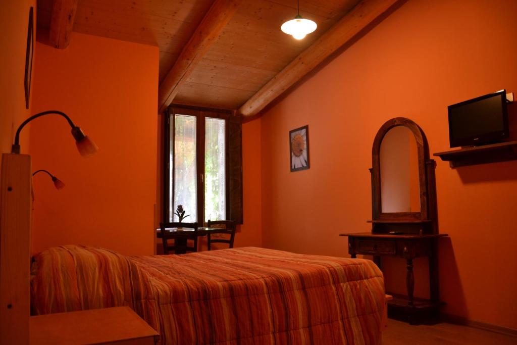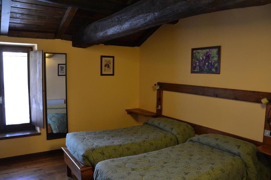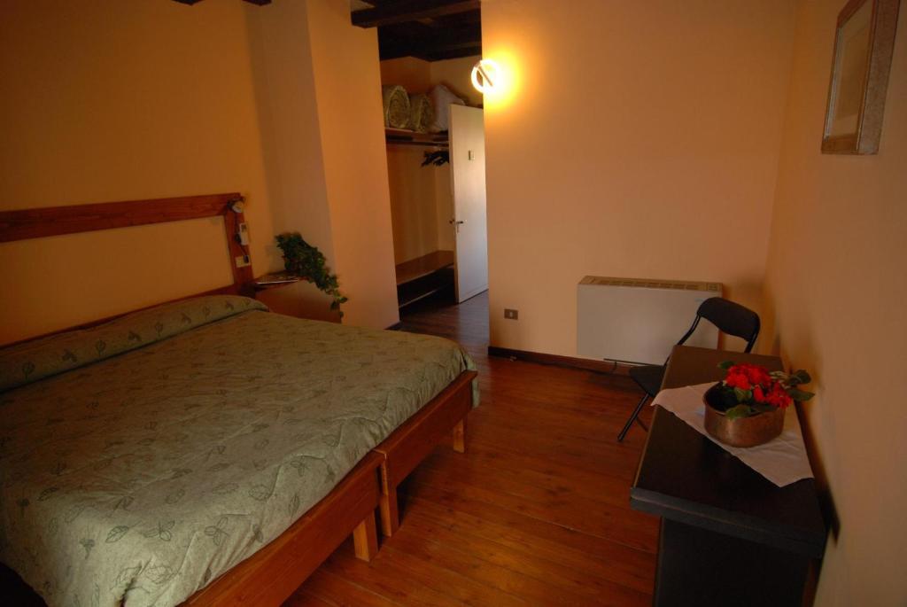 Le camere presentano un design rustico con pavimenti in legno o piastrellati e mobili in legno.