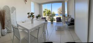 Questo appartamento climatizzato comprende un ingresso indipendente, 1 soggiorno, 2 camere da letto separate e 2 bagni con doccia a filo pavimento e bidet. La cucina dispone di piano cottura, frigorifero, lavastoviglie e utensili. Spazioso e affacciato sul mare, l’appartamento include lavatrice, set per la preparazione di tè e caffè, area salotto e TV a schermo piatto. L’alloggio presenta 4 letti.
