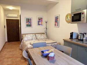 Questo appartamento con aria condizionata prevede 1 camera da letto, TV a schermo piatto, zona pranzo e cucina con frigorifero e microonde. Presso questo appartamento troverete asciugamani e lenzuola a disposizione.