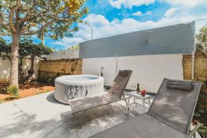 This holiday home's standout feature is the hot tub. Boasting a private entrance, this air-conditioned holiday home includes a kitchen, 2 bedrooms and 2 bathrooms with a shower and a bidet. Guests will find a stovetop, a refrigerator, a dishwasher and kitchenware in the kitchen. The holiday home also features a barbecue. The holiday home offers a washing machine, a coffee machine, a seating area, a flat-screen TV with streaming services, as well as garden views. The unit has 3 beds.