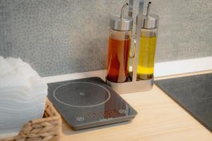 Boasting a private entrance, this air-conditioned holiday home features 1 living room, 1 separate bedroom and 1 bathroom with a shower and a hairdryer. The fully equipped kitchen features a stovetop, a refrigerator, kitchenware and an oven. This holiday home has a tea and coffee maker, flat-screen TV with streaming services, a quiet street view, as well as chocolate for guests. The unit has 3 beds.