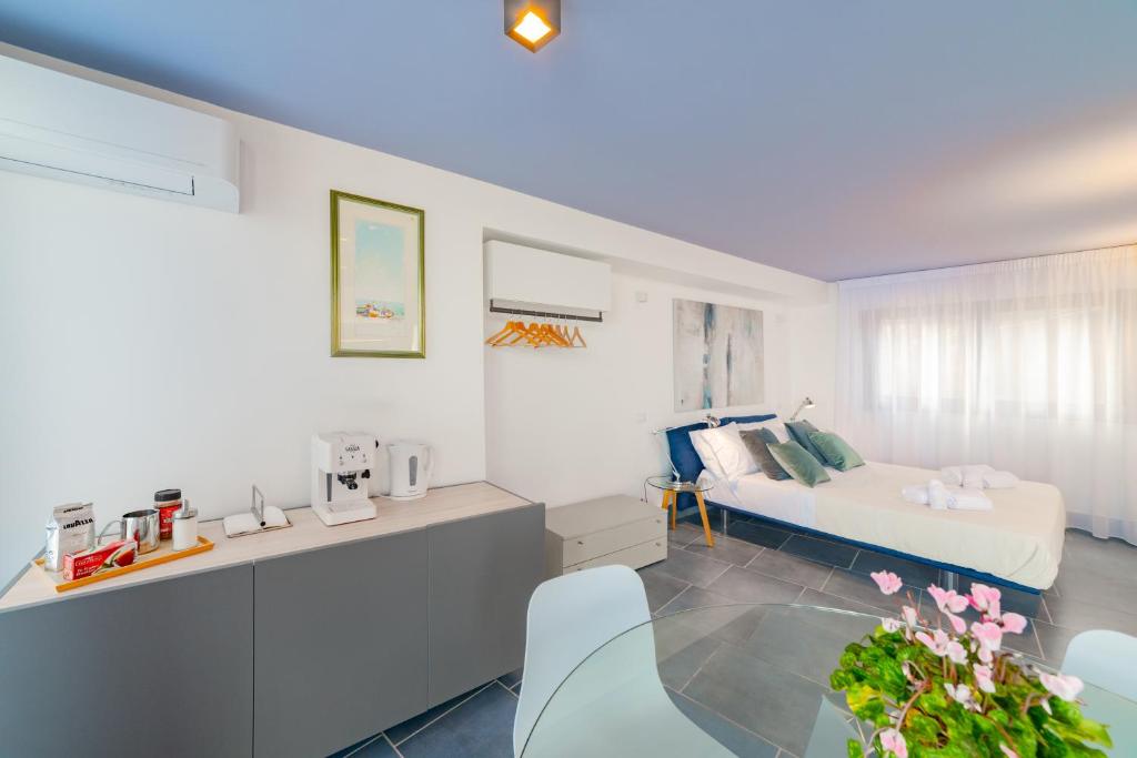Guests can make meals in the kitchen that has a stovetop, a refrigerator, kitchenware and a tea and coffee maker. The studio features air conditioning, soundproof walls, a terrace with sea views as well as a private bathroom boasting a shower. The unit has 1 bed.