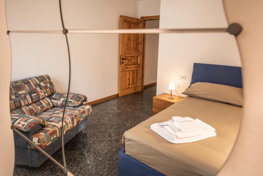 Questo appartamento presenta 3 camere con letto, di cui una matrimoniale, una con 2 letti singoli e una singola. L’alloggio vanta un armadio, un’area giorno e salotto, un tavolo da pranzo, una TV e un ampio balcone. Avrete a disposizione anche una cucina e due bagni.