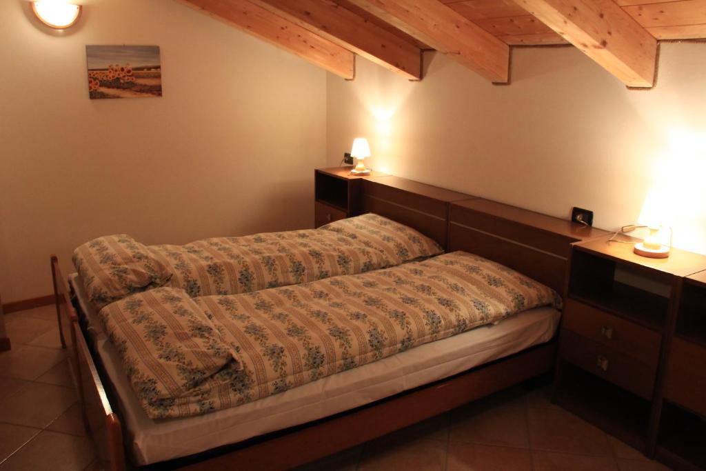 Boasting beautiful views of the Brenta Dolomites, this apartment features simple décor and tiled floors. Set on 2 floors, it consists of 4 bedrooms, 2 bathrooms, and a spacious living room with large dining table and kitchenette.