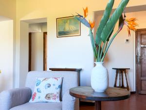 Featuring a private entrance, this holiday home is comprised of 1 living room, 2 separate bedrooms and 1 bathroom with a shower and a bidet. In the kitchen, guests will find a stovetop, a refrigerator, a dishwasher and kitchenware. The holiday home features tiled floors, a seating area with a flat-screen TV, a washing machine, a coffee machine as well as garden views. The unit offers 3 beds.