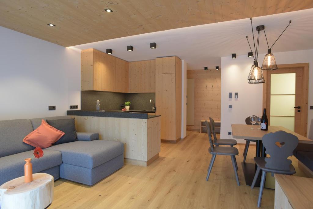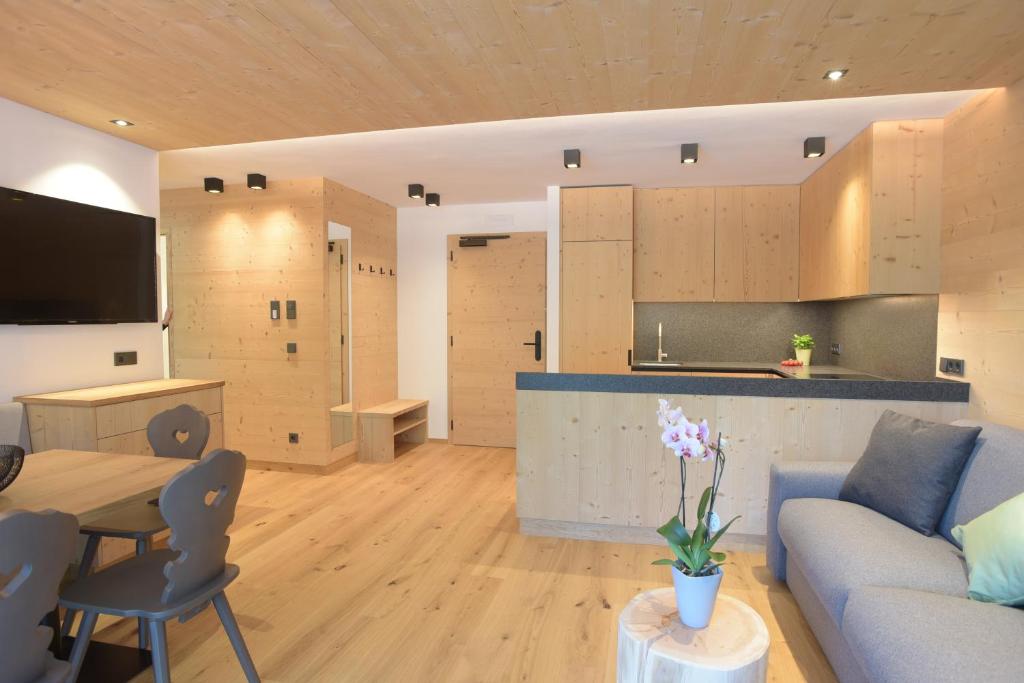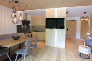 This Alpine-style apartment comes with wooden furnishings and floors, underfloor heating, and a balcony with mountain views. The private bathroom offers a shower and a hairdryer.