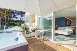 La vasca idromassaggio è il fiore all’occhiello di questa suite. Suite climatizzata con 1 camera da letto e 1 bagno con doccia e bidet. Questa suite è dotata di terrazza con vista sul mare, pareti insonorizzate e TV a schermo piatto. L’alloggio presenta 2 letti.