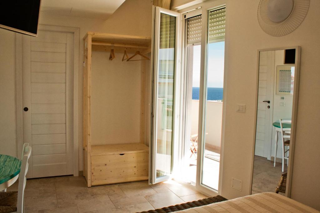 Camera matrimoniale climatizzata con TV a schermo piatto con canali satellitari, bagno privato e terrazza con vista sul mare. Presenta 1 letto.