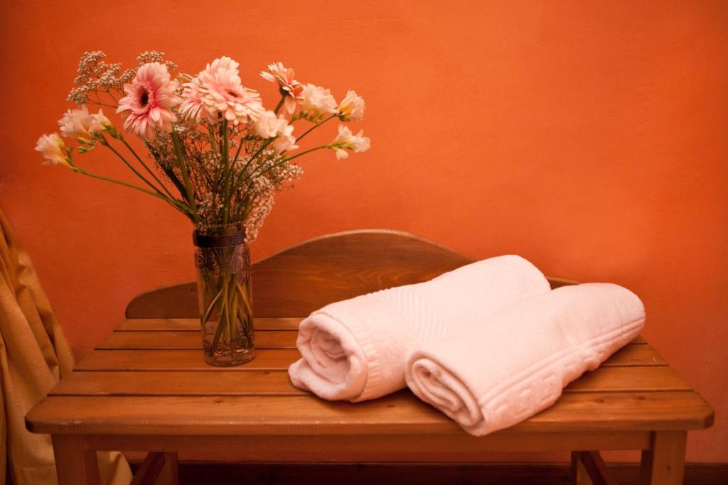 Camera a tema arancione con ingresso indipendente e affaccio sui vicoli del centro storico. Dispone di aria condizionata, TV e bagno con doccia.