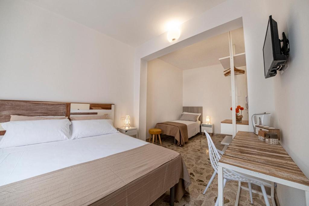 Camera tripla climatizzata con ingresso indipendente, terrazza con vista sulla città e bagno privato con doccia. L’alloggio dispone di 2 letti.