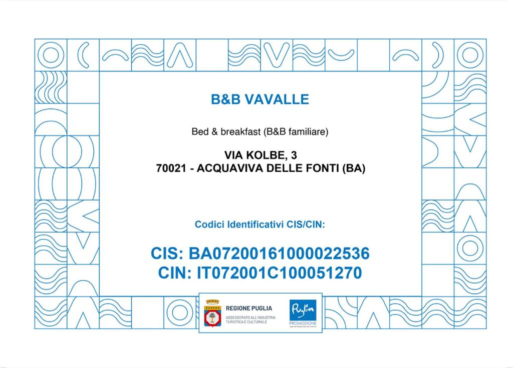 BA07200161000022536, IT072001C100051270Verifica CIN (Codice Identificativo Nazionale)