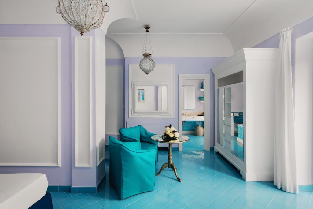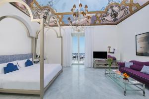 Camera spaziosa e moderna con mobili d'epoca e di design, e balcone con vista sul Mar Mediterraneo. Dispone inoltre di aria condizionata, minibar e bagno privato con asciugacapelli e set di cortesia.
