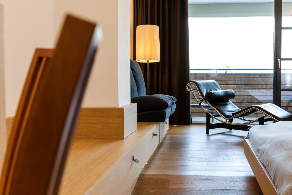 Camera non fumatori con vista sulle montagne, dotata di area salotto con TV satellitare a schermo piatto, cassaforte e bagno privato con asciugacapelli e set di cortesia.