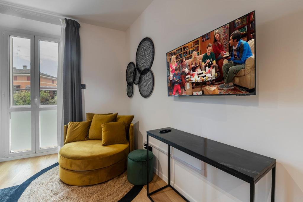 Questo appartamento offre una TV e un bagno privato con set di cortesia, asciugacapelli e bidet. In certi alloggi c’è anche una cucina con frigorifero, microonde e piano cottura. Piazza Maggiore è a 23 km da Borgo Rotondo, mentre Quadrilatero Bologna si trova a 23 km dalla struttura.