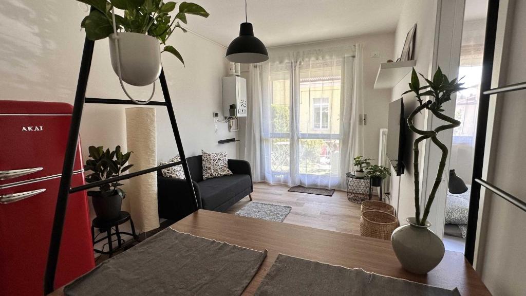 Questo appartamento prevede 1 camera da letto, 1 bagno, lenzuola, asciugamani, una TV a schermo piatto, una zona pranzo, una cucina con utensili e una terrazza con vista sul giardino.