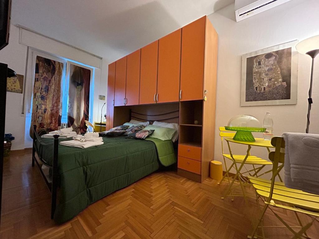 Camera matrimoniale con bagno in comune dotato di vasca, doccia, bidet e set di cortesia. Camera matrimoniale dotata di aria condizionata, TV a schermo piatto, macchina da caffè, zona pranzo, armadio e vista sulla città. L’alloggio presenta 1 letto.