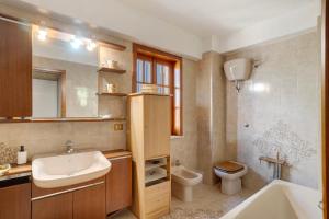 Questa casa vacanze ha 5 camere da letto, 4 bagni, lenzuola, asciugamani, una TV con canali satellitari, una cucina con utensili e un balcone con la vista sulla città.