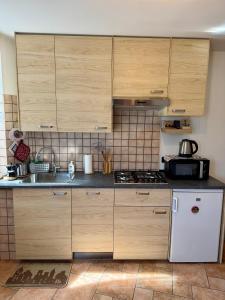 The fireplace is the standout feature of this holiday home. Boasting a private entrance, this holiday home comes with 1 living room, 1 separate bedroom and 1 bathroom with a shower and a bidet. Guests can make meals in the kitchen that features a stovetop, a refrigerator, a dishwasher and kitchenware. The holiday home has parquet floors, a seating area with a flat-screen TV, a washing machine, a tea and coffee maker as well as mountain views. The unit has 2 beds.