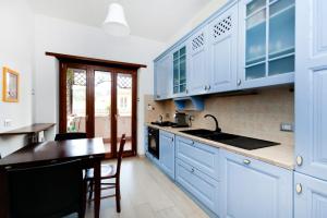Questa casa vacanze con aria condizionata comprende 2 camere da letto, un soggiorno, una cucina con utensili, frigorifero e macchina da caffè, e 2 bagni con bidet e doccia.