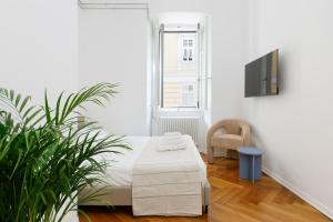The apartment's kitchen is available for cooking and storing food. The spacious apartment provides air conditioning, a washing machine, heating and a flat-screen TV. The unit offers 1 bed.