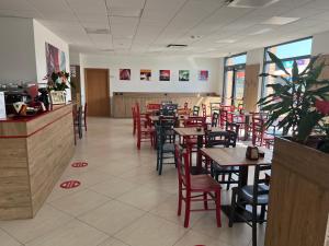 - Distanziamento fisico nelle zone pasti,