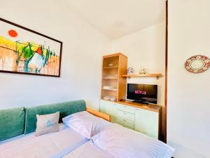 The private pool is the special feature of this apartment. This apartment comprises 1 living room, 1 separate bedroom and 1 bathroom with a shower and a bidet. In the well-fitted kitchenette, guests will find a stovetop, a refrigerator, kitchenware and a toaster. Featuring a terrace with pool views, this apartment also provides an electric kettle and a flat-screen TV. The unit offers 2 beds.