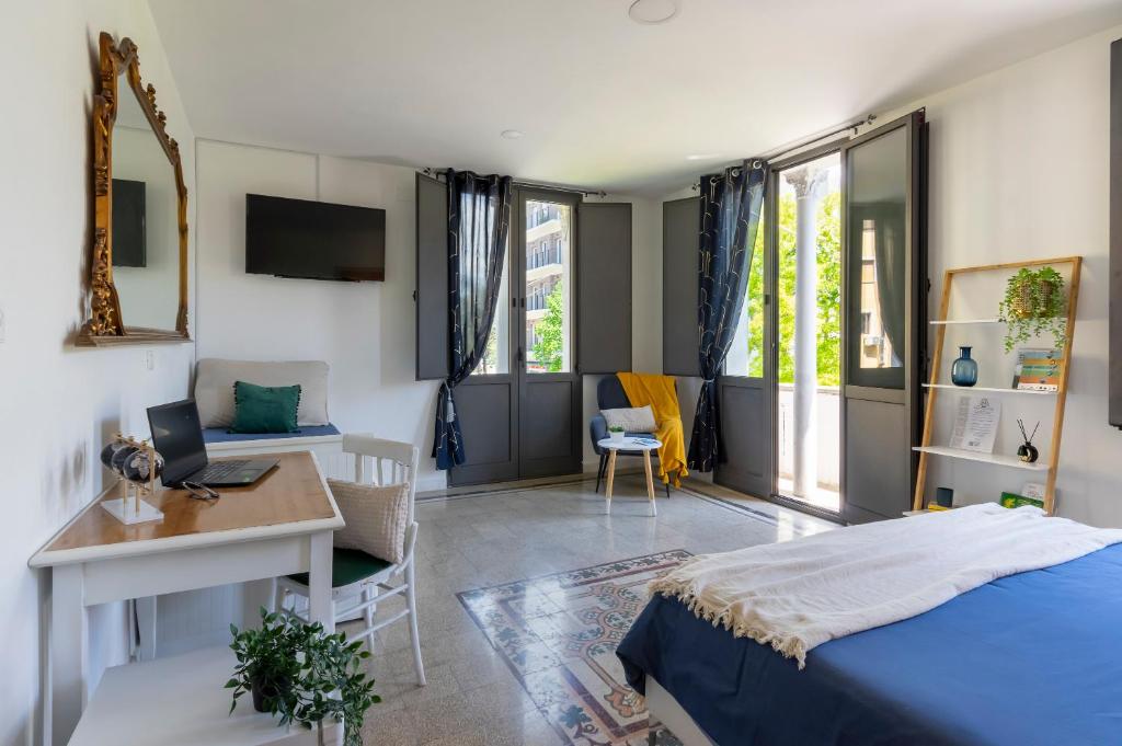This air-conditioned quadruple room features a desk, a patio, city views and a private bathroom. The unit offers 3 beds.
