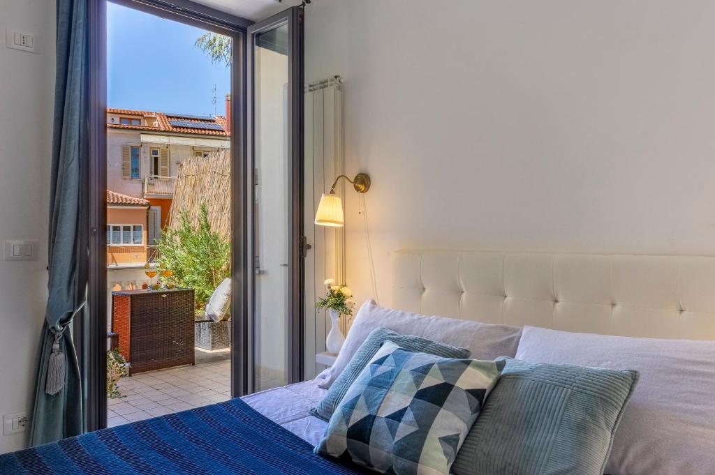 Camera matrimoniale climatizzata con armadio, terrazza con vista sulla città e bagno privato con doccia. L'unità include 1 letto.