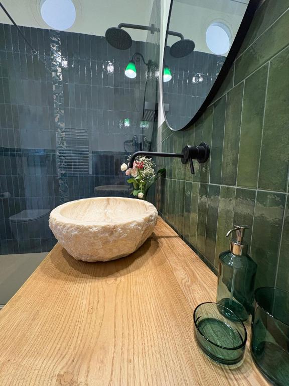 Questa spaziosa camera matrimoniale presenta interni climatizzati, un ingresso indipendente, un balcone con vista sul cortile interno e un bagno privato con doccia a filo pavimento. L’alloggio presenta 1 letto.