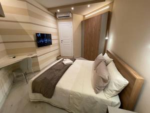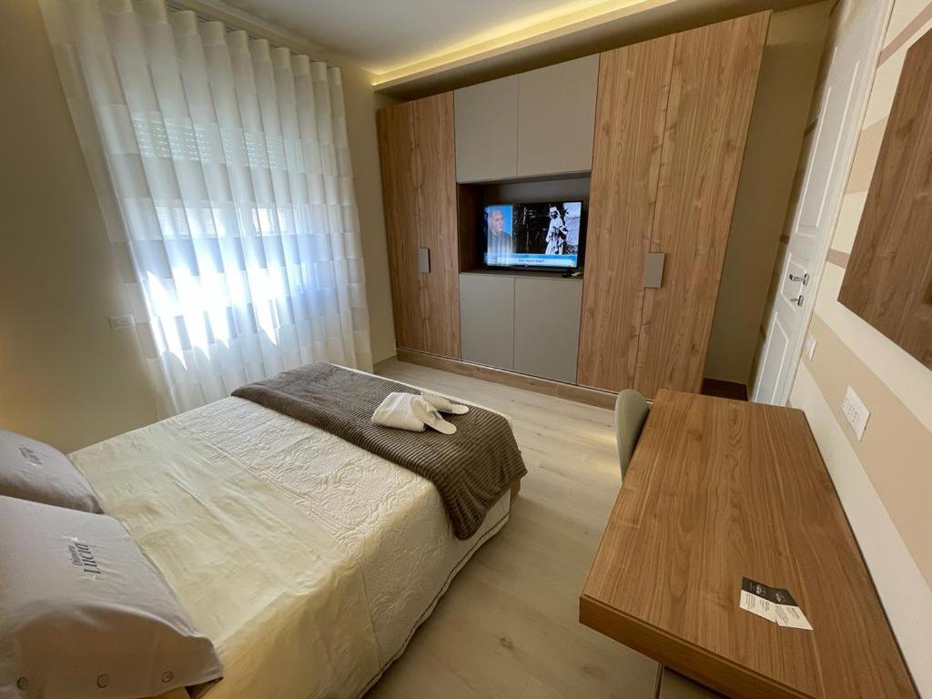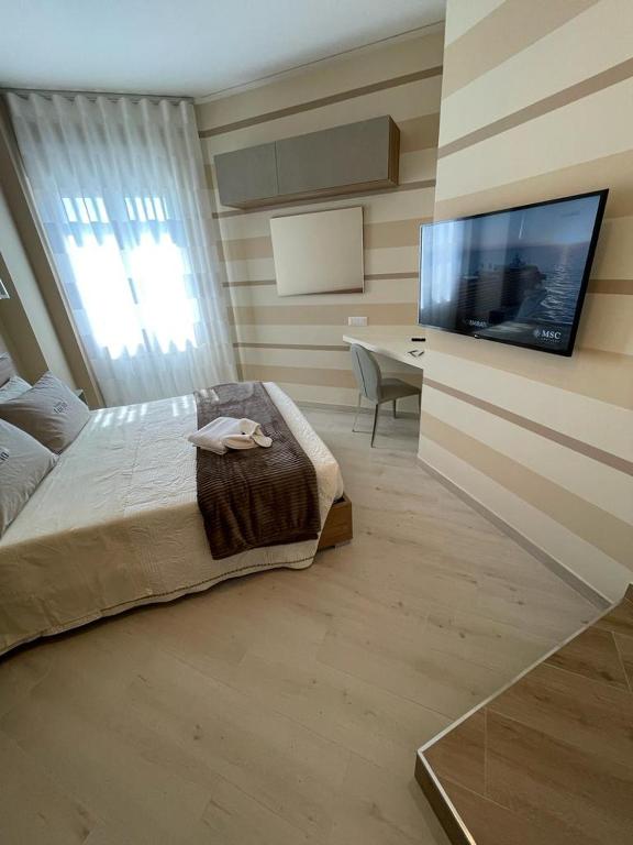 Il bagno privato comprende bidet e set di cortesia. In dotazione anche un forno, un microonde e un minibar, oltre a una macchina da caffè. Aeroporto di Foggia “Gino Lisa” si trova a 28 km di distanza.