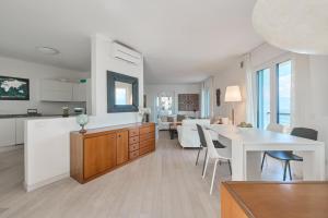 Appartamento con vista sul mare da una terrazza o da un giardino privati. Dispone di lavastoviglie, aria condizionata, angolo cottura e 2 bagni.