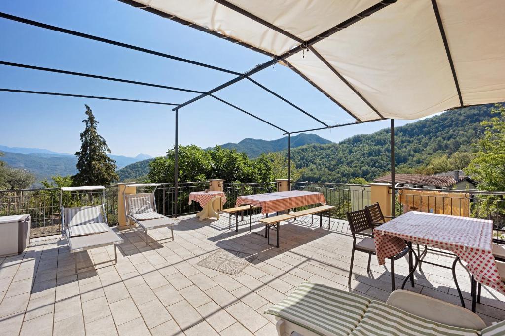 Con terrazza e vista sulla montagna, questo appartamento include 2 camere da letto, un soggiorno, TV con canali satellitari, una cucina con utensili e 1 bagno con doccia.