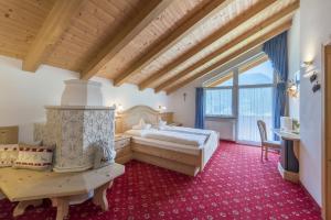 Ampia camera con arredi in stile alpino e balcone con vista sul giardino. La sistemazione è dotata di TV satellitare a schermo piatto. Alcune sistemazioni includono un divano e un tavolino rotondo.
