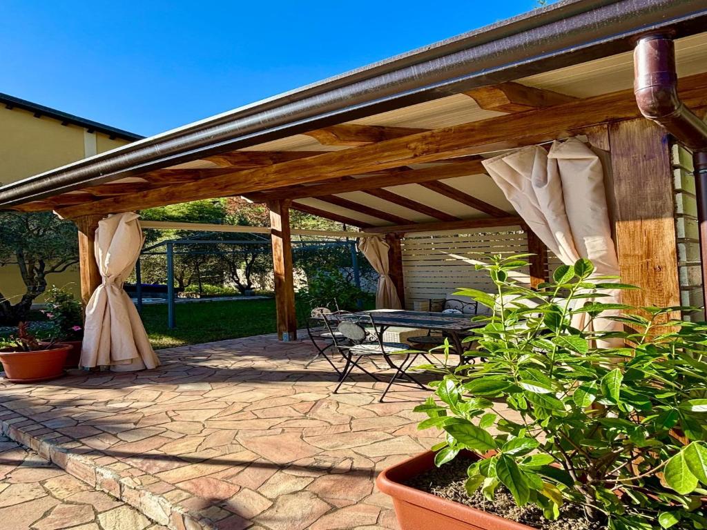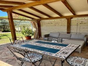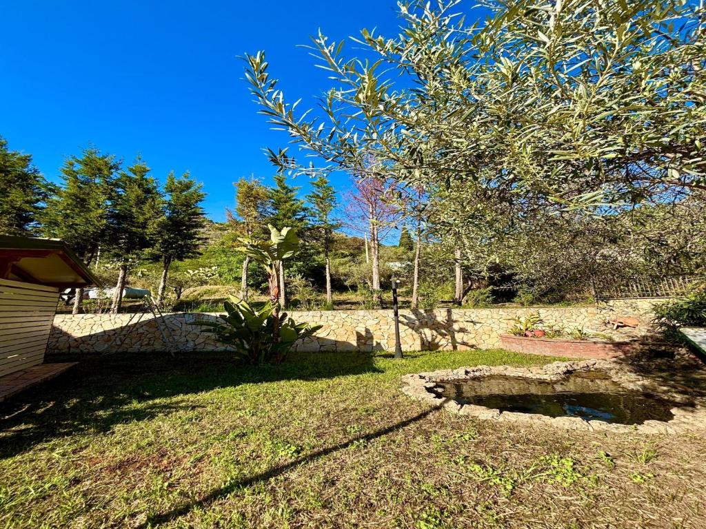 Con la vista sulla montagna e sul giardino, questa casa vacanze prevede 2 camere da letto e accede direttamente a una terrazza. Questa casa vacanze con aria condizionata propone anche una TV, una cucina con utensili e frigorifero, un’area salotto e 2 bagni con bidet, doccia e vasca da bagno.