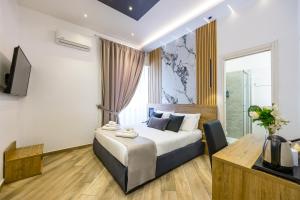Camera matrimoniale dotata di aria condizionata, pareti insonorizzate, balcone con vista sulla città e bagno privato con doccia. L’alloggio dispone di 1 letto.