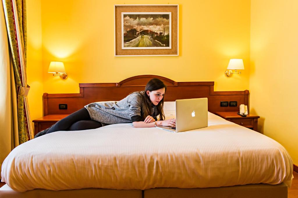 Camera climatizzata con connessione WiFi gratuita, TV LCD satellitare con canali Mediaset Premium e bagno privato con set di cortesia.